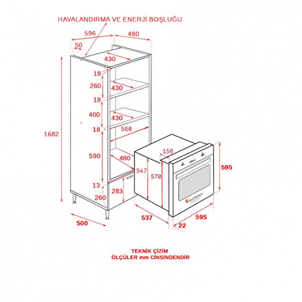 Mini fırın Dolap içi 5 Bölme Bulunmaktadır.